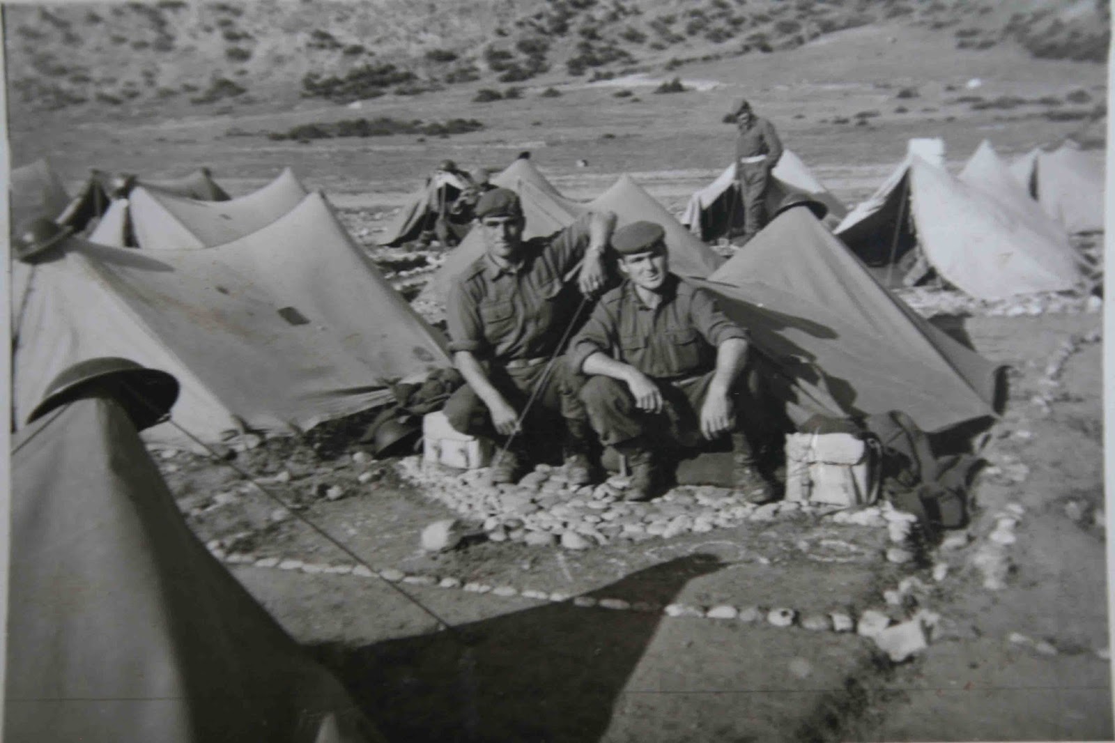 Φορτωμένοι λοιπόν με τον στρατιωτικό μας εξοπλισμό, αλλά και με τα ατομικά μας αντίσκηνα στα χέρια, πήγαμε και σταθήκαμε πίσω απ’ όλους τους άλλους στρατιώτες.